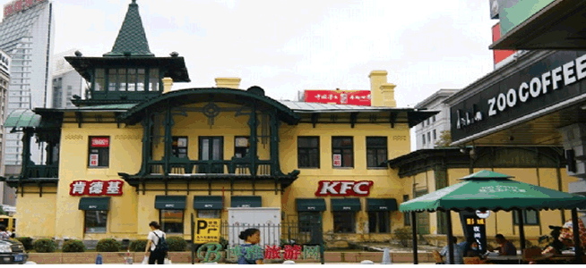 | ハルビン東清鉄道局長官邸。歴史建築、1920年、木骨煉瓦造り、 新芸術運動的建築風格,所在地:紅軍街38号、「東方のパリ」とも称される西洋風の街並みが残っています。道をはさみ、欧州風建築物が建ち並び、ルネサンス式、バロック式、折衷式など中国でも珍しい多種多様な市指定建築物が、保護建築が並んで居ます。黒龍江省博物館傍にあるKFC(ケンタッキー)肯徳基は歴史建築に入っています。歴史建築の内部に入ってお茶が飲める場所等はまれに見るチャンスです。店内客室にはシャンデリアが灯され、歴史建築の写真が飾られています。ちょっぴり当時の雰囲気が楽しめます。 |